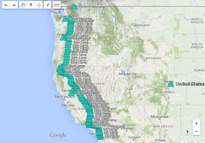 Water at Jen’s, mile 2152.2 seasonal stream, mile 2163.6 Rock Creek