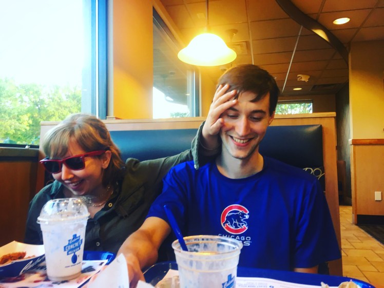 We couldn’t see the sunset, but watched the sky darken and colors streak by. We were both ready for an early night to bed.